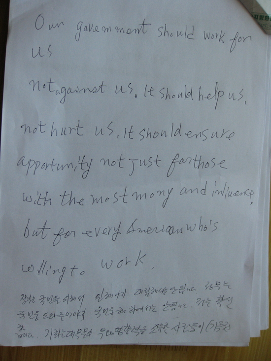 장모님 왈 : 오바마 취임연설문이 너무 좋아서 베끼셨다고 한다.