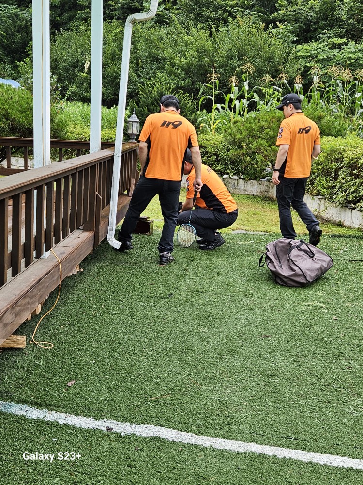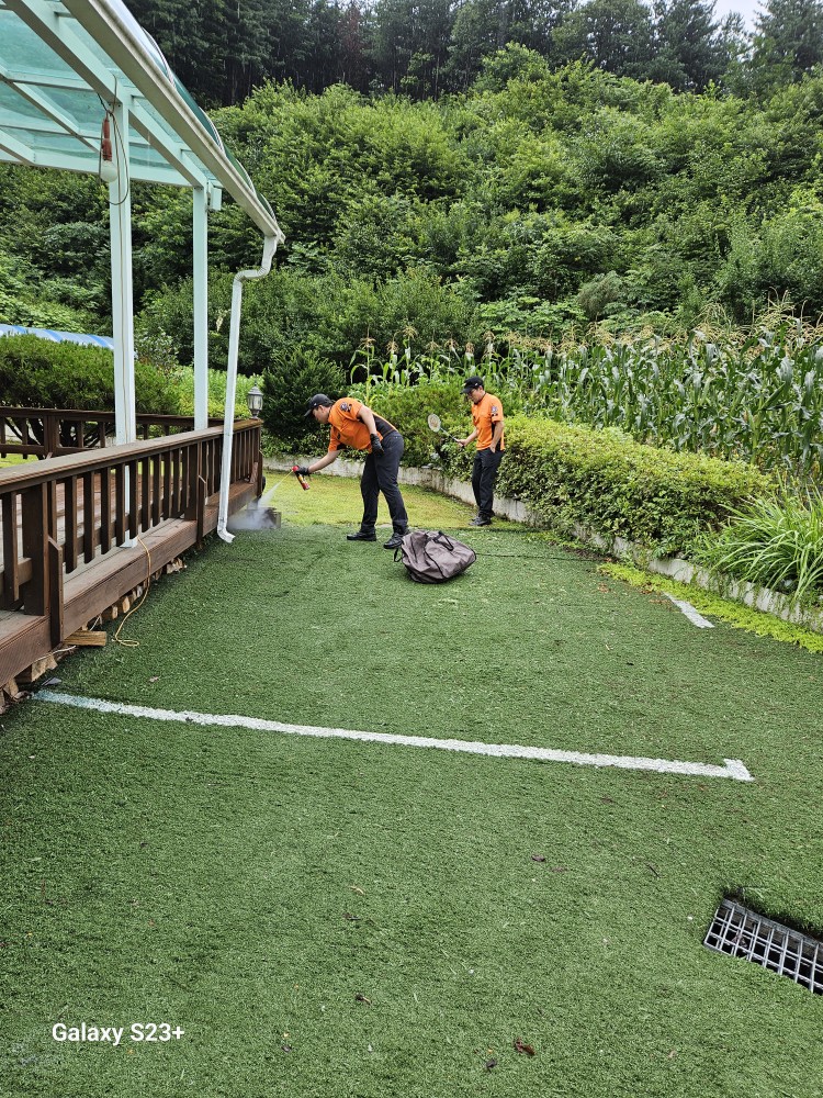 어쩔 수 없이 119에 신고했다. 세 명의 소방관이 출동했는데 아무런 장비도 갖추지 않고 성큼성큼 다가와 무언지 모를 스프레이를 뿌린다. 그리고 날아다니는 벌은 배드민턴 채를 휘둘러 잡는다. 정말 용감한 사람들이다.