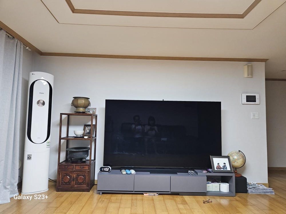 이사 가는데 큰 텔레비젼을 사라고 아들이 권했다. 85인치 삼성텔레비젼이다. 1000만원 가까이 가는 것을 삼성에 다니는 아는 사람을 통해 직원가로 할인 받아서 샀다. 대금은 큰 아들 아산이가 냈다. 커서 좋기는 한데 지금까지 사용했던 것을 다시 써도 되는데 낭비가 크다.  사실 250만원이면 85인치 일반제품을 살 수 있는데 큰 아들이 다양한 기능이 있고 화질과 음질이 너무 차이가 난다며 최상품을  사야한다고 고집을  피워 할 수 없이 비싼 것을 샀다.  사고 보니 여러모로 좋기는 하다. 사운드 바를 추가했는데 그것도 고가였다.