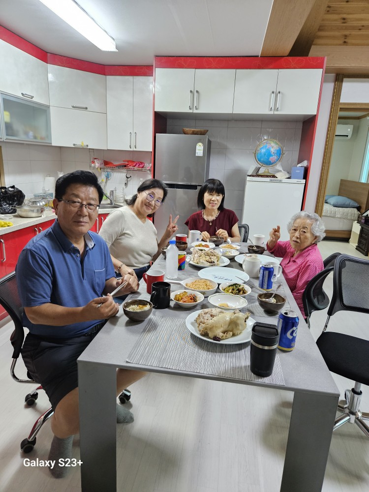 40년 교단 생활을 하면서 경기교육계에서 제일 친한 벗을 고르라면 김학규 교장님 이다. 김교장은 나와 함께 경기도교육청 장학사를 거쳤고 경기정보산업과학고등학교 교장으로 정년하였다. 김학규 교장 부부가 내 우거를 찾아왔다. 여름 보양식인 삼계탕을 준비해와서 끓여 먹었다. 평생 먹은 삼계탕 중 최고였다. 집에서 준비하기 힘들었을 텐데 정말 고마웠다.  녹두를 곁들인 밥까지 준비해와서 아주 맛있게 먹었다. 어머니를 맡길 데가 없으니 모든 과정에 동참하셨다. 그것도 감사한 일이다. **