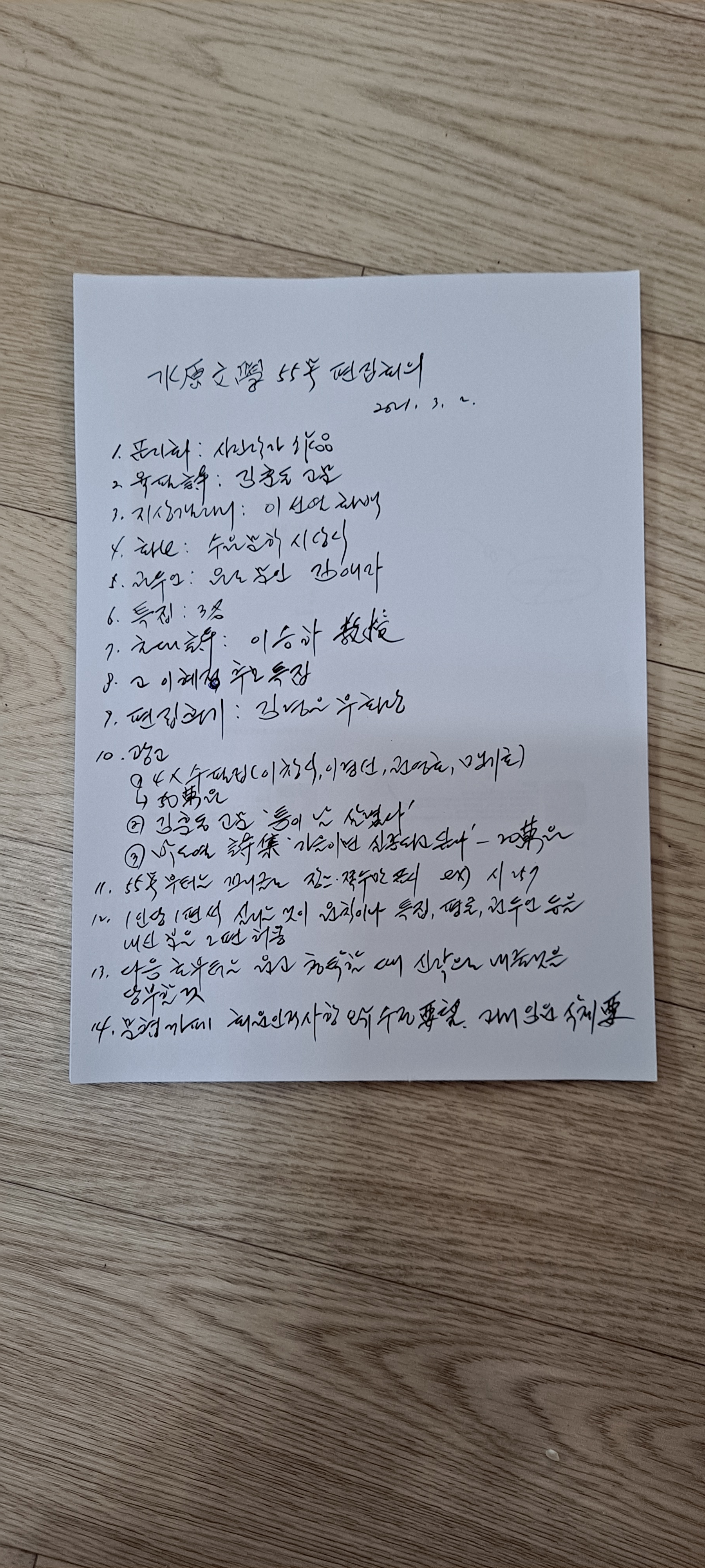 어제 수원문인협회에서 발행하는 수원문학 55호 편집회의가 있었다.