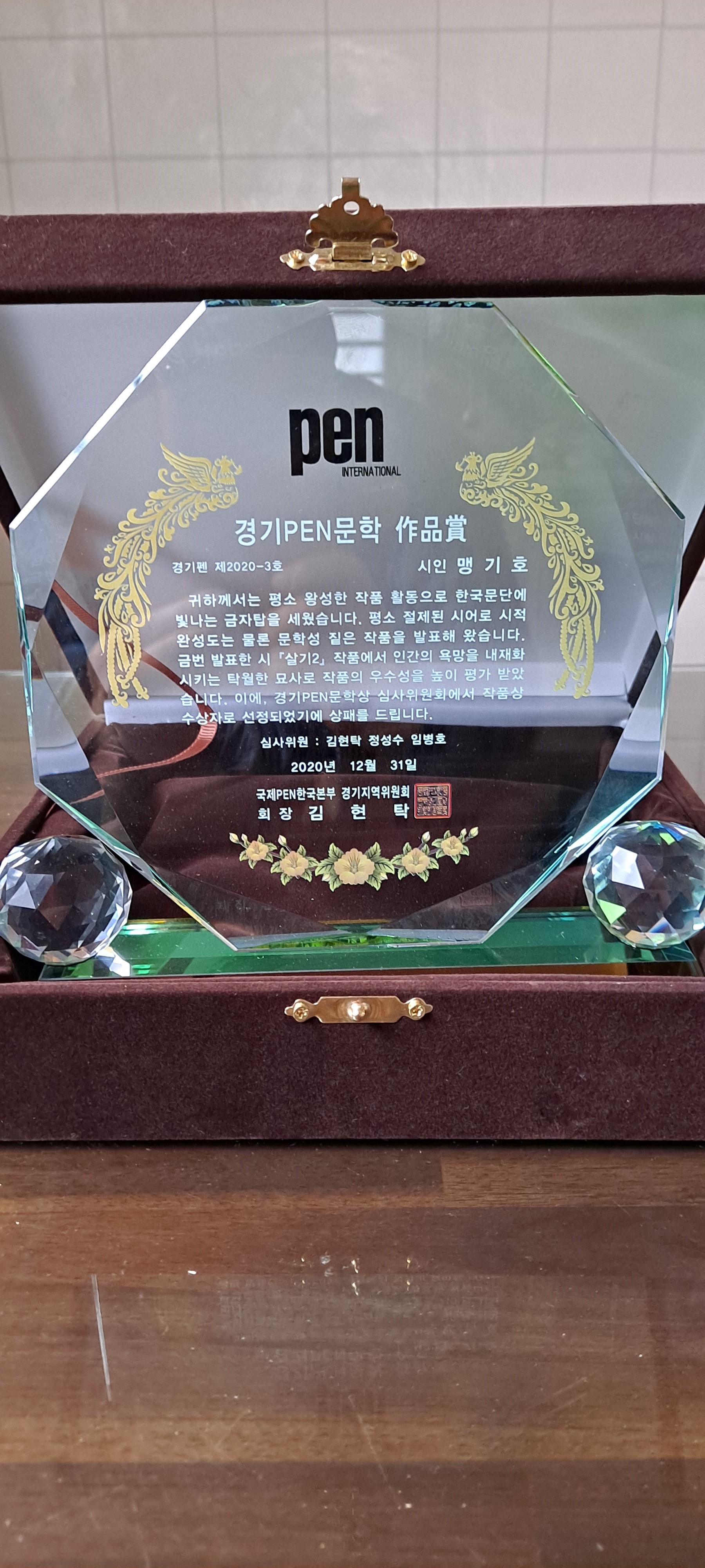 어제 국제pen한국본부 경기지역위원회에서 수여하는 2020경기pen문학상을 받았다.