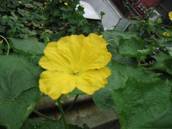 오늘 아침 2층 베란다 까지 올라온 수세미 꽃을 보고 놀랐다