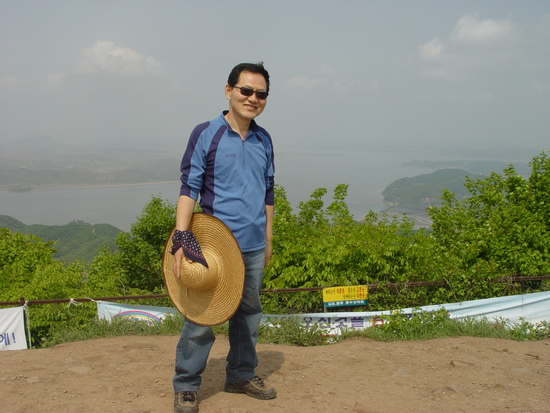 뒷쪽은 한강이며 강 건너가 북한 땅이다.