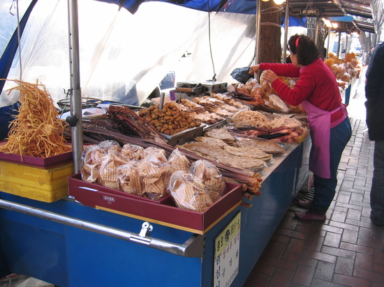 종로 쪽으로 돌아오는 길에 오징어류를 팔고 있는 아주머니