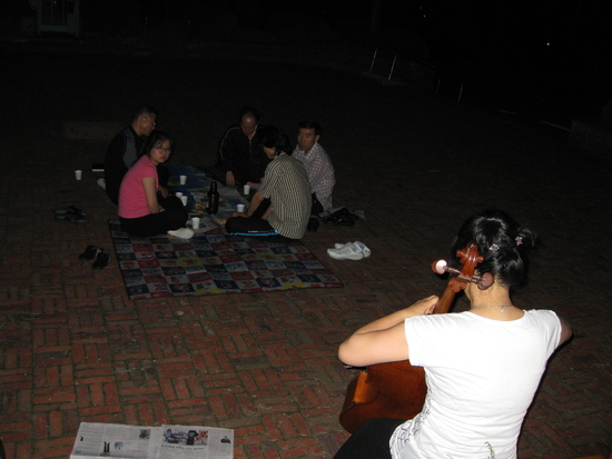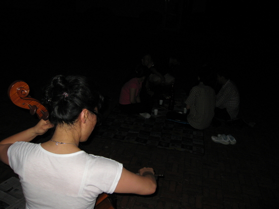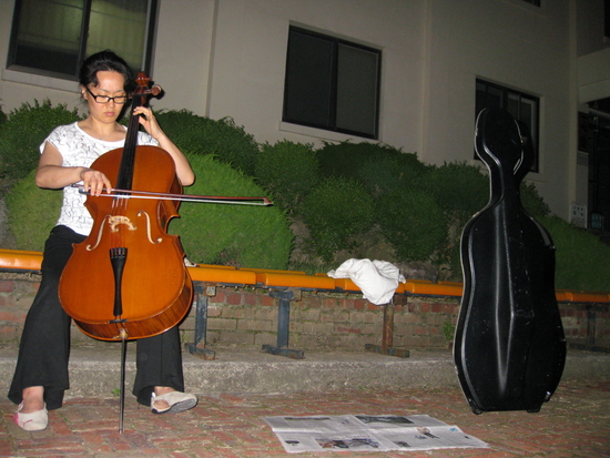 첼로를 전공한 김수영선생님이 밤 9시에 뜰에서 음악회를 연다고 하여