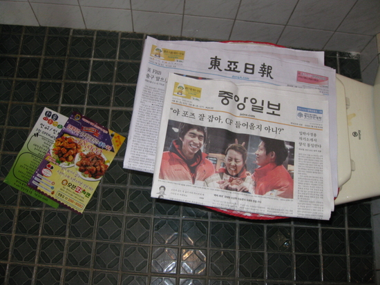 동아, 중앙 두가지나 양변기 위에 올려놓고……