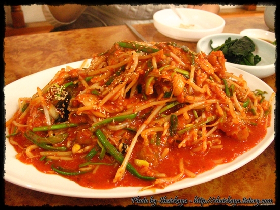 아구찜을 안주로 하여 술을 마셨다. 아주 행복하였다.