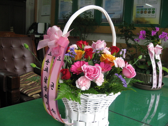 학부모회에서 여러번 말렸는데도 꽃을 보내왔다.