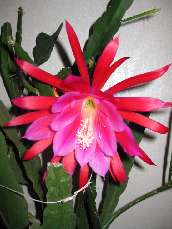 집에서 키우는 공작선인장이 꽃을 피웠다.