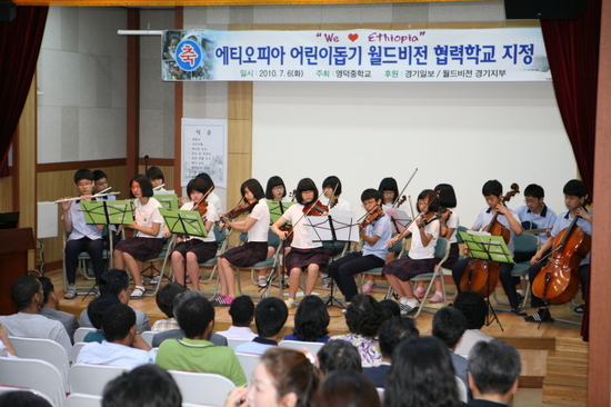 이제 우리나라가 G20 의장국이 될 만큼 발전하였고, 금년 1/4분기 수출액은 영국과 캐나다를 제치고 세계8위에 등극했습니다. 이제는 은혜를 값을 때가 되었습니다. 이에 영덕중학교 학생들이 뜻을 모아 에티오피아 어린이를 돕기 위한 결연 운동을 벌여 은혜에 보답하는 마음을 기르고 장차 세계시민으로서 지구촌 사회를 살아갈 성숙한 시민의 자질을 기르기 위해 에티오피아 어린이와 결연하는 운동을 시작합니다. 1학급당 에티오피아 어린이 1명을 결연하는 사업에 30개 학급이 참여합니다.