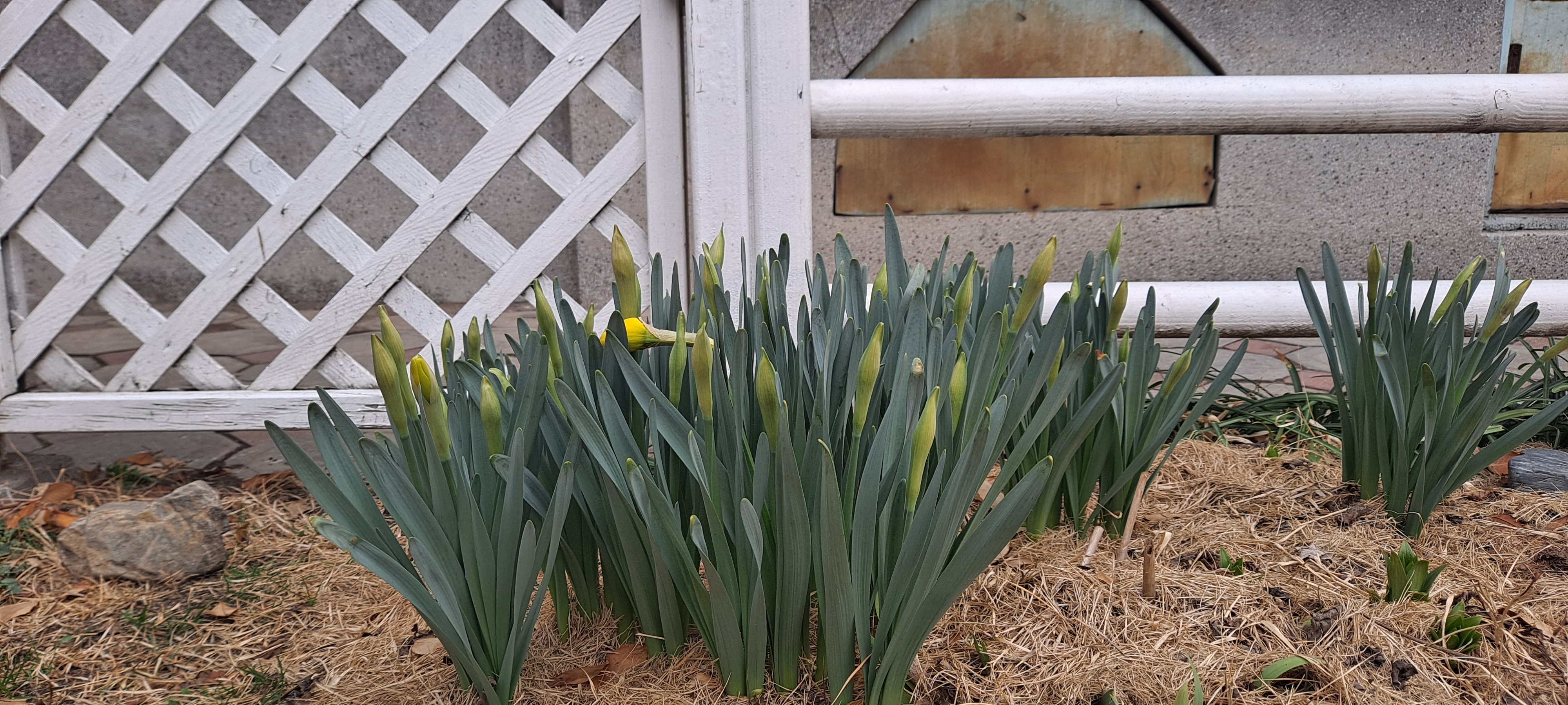이제 내일 이면 노란 꽃망울을 보일것 같다. 주변의 잔디는 죽은듯 누렇게 자고 있는데 수선화 너는 어떻게 이렇게 이른 시절에 전성기를 맞는지! 내 어찌 너를 사랑하지 않을 수 있으랴! 정말 감사하고 감사한 일이다.