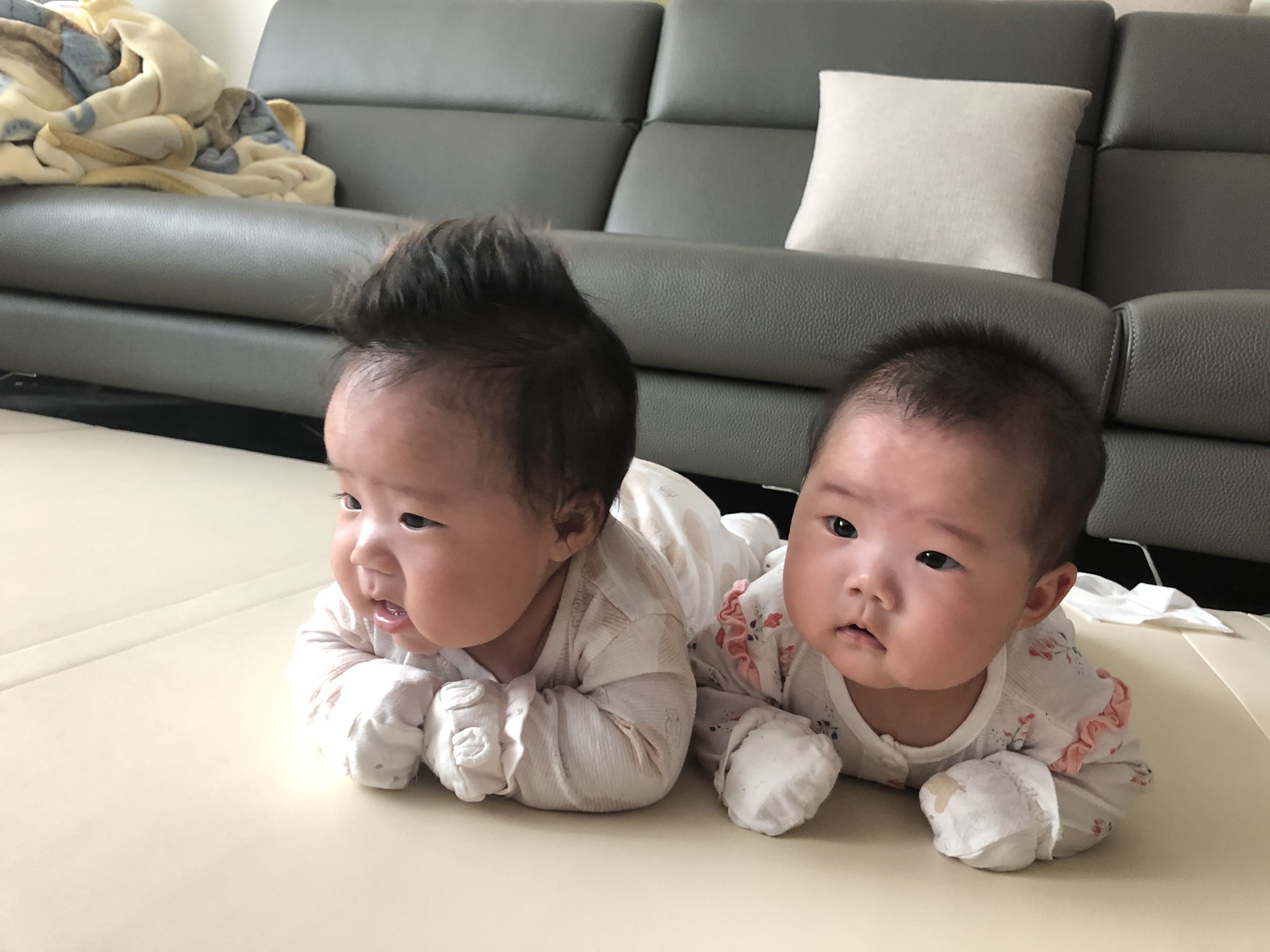 둘째 아들 맹석영이 딸 쌍둥이를 낳았다. 정확하게는 둘째 며느리 김하나가 딸 쌍둥이를 낳았다. 우리 집안에 쌍둥이는 처음이다. 정말 경사스러운 일이다. 나는 아들만 둘을 두었다. 딸이 없는 나로서는 쌍둥이 손녀는 경이로운 일이다. 정말 감사하다. 엊그제 100일이었는데 100일 지난 후 처음으로 엎드려 고개를 든다고 며느리에게서 사진이 왔다. 매일 누워서 놀더니 힘겹게 엎드려 고개를 든다. 뒷목에 근육이 생긴것이다. 역시 경이로운 일이다. ^-^