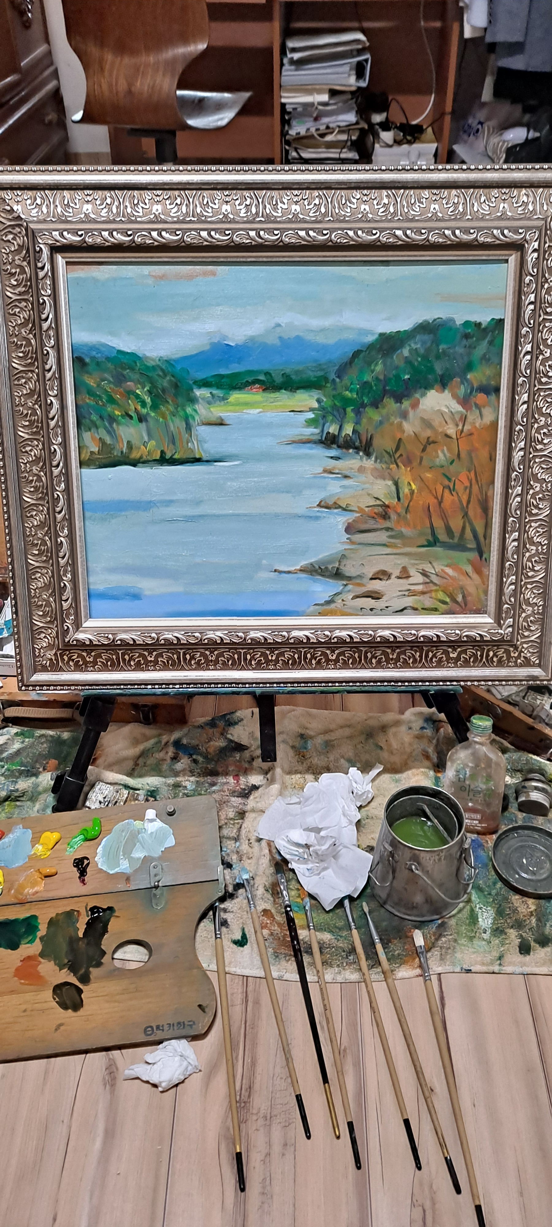 큰일났다. 부리나케 화구를 펴고 오랜만에 붓을 잡았다. 하루 종일 씨름하면서 두 점을 완성하였다. 우선 웹하드에 사진 찍어 올리고 12월 전시이기 때문에 작품은 11월 22일에 내면 된다.