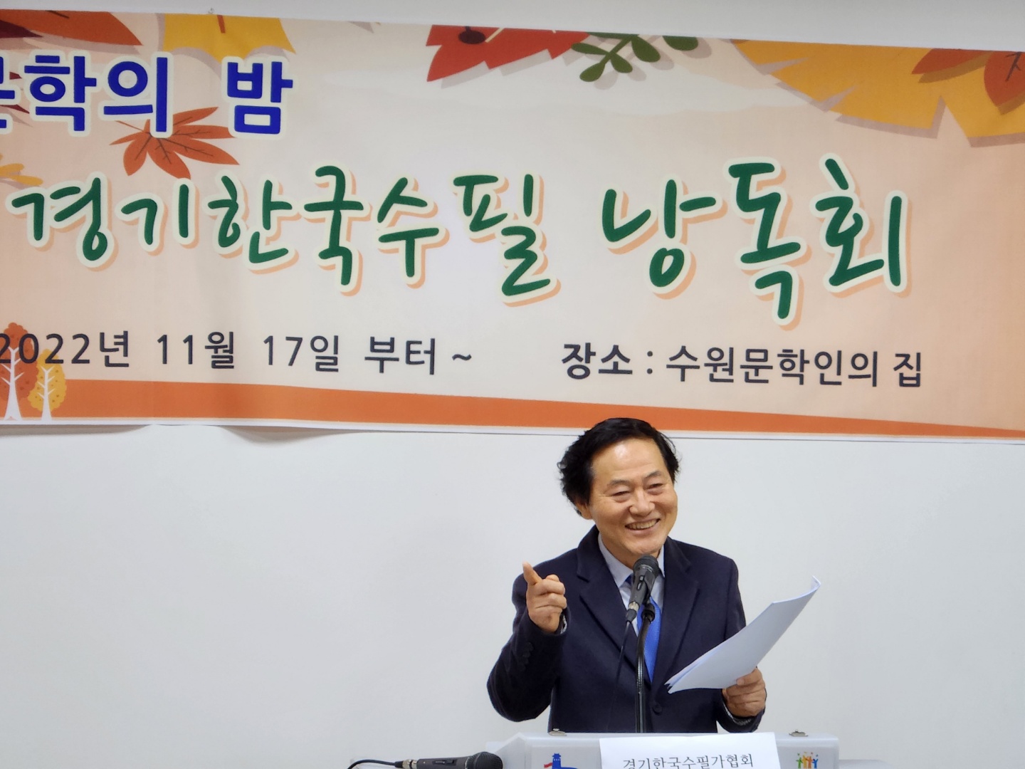 하여 내가 경기수필가협회 회장을 맡고 나서 수필 읽는 행사를 열었다. 내 글을 읽고, 그리고 남의 글을 들어주는 시간이다. 詩낭송! 언어의 은유 뒤에 숨은 의미를 낭송을 듣고 이해하기는 쉬운 일이 아니다. 그러나 수필은 다르다. 듣기만 해도 해석이 되고 이해가 된다.