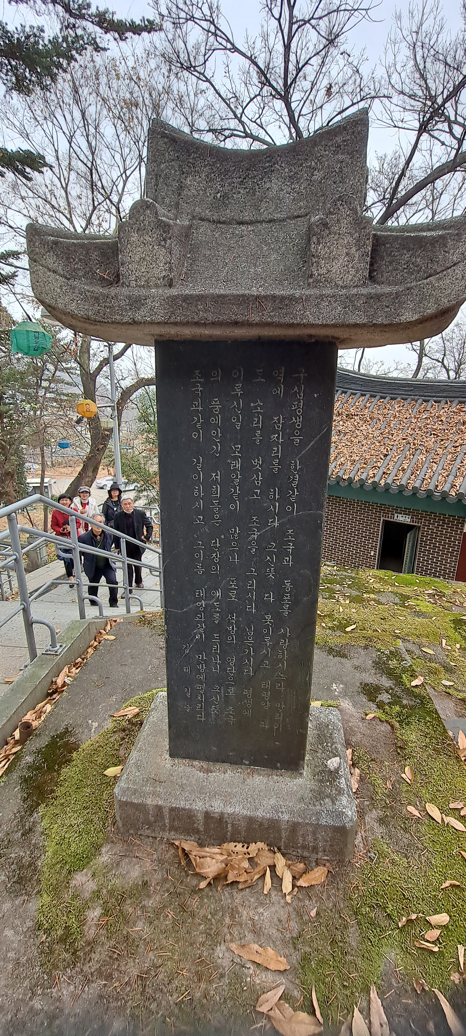 1960년대 중반 이승만대통령의 반공포로 석방으로 자유의 땅에서 살게된 사람들이 이승만대통령에 대한 고마운 마음을 나타내기 위해 세웠다고 비석 뒷면에 써있었다. 글을 지은이는 김태길 수필가여서 그의 문학비를 세운 나는 더욱 반가웠다.