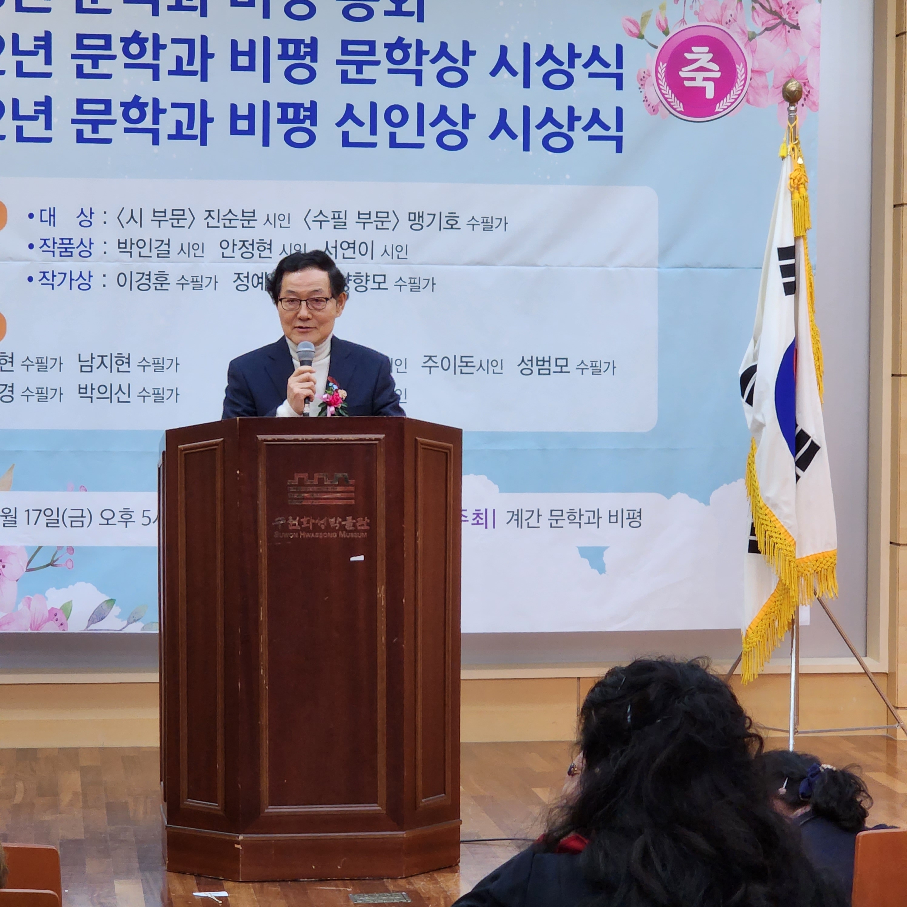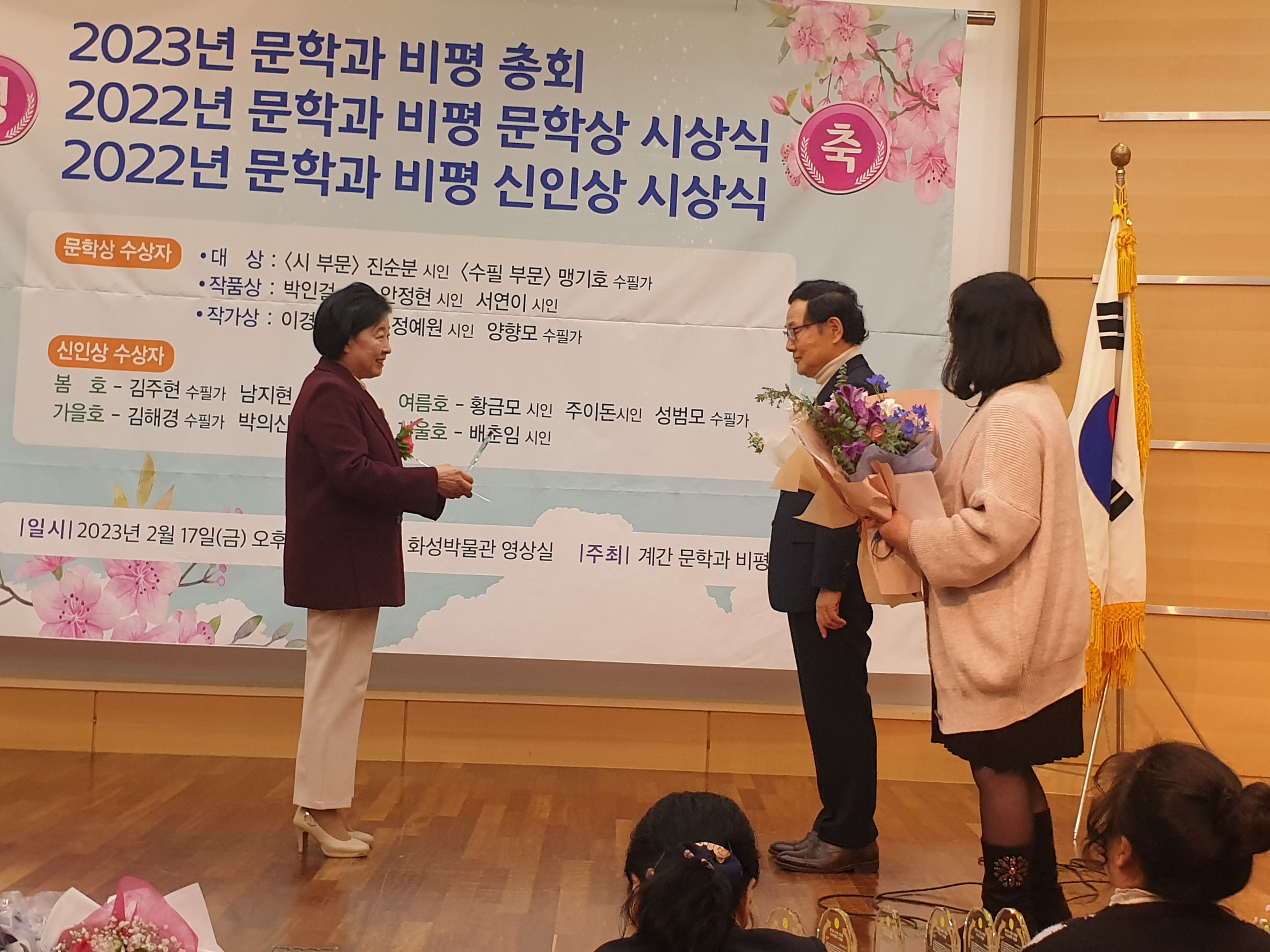 2월 17일 계간 문학지 문학과 비평에서 주는 2022년 문학상 시상식에서 상을 받았다. 아직 공부가 많이 필요한 사람이 이런 상을 받아도 되는지 부끄럽기만 하다. 더욱 조심하고 경계할 일이다.