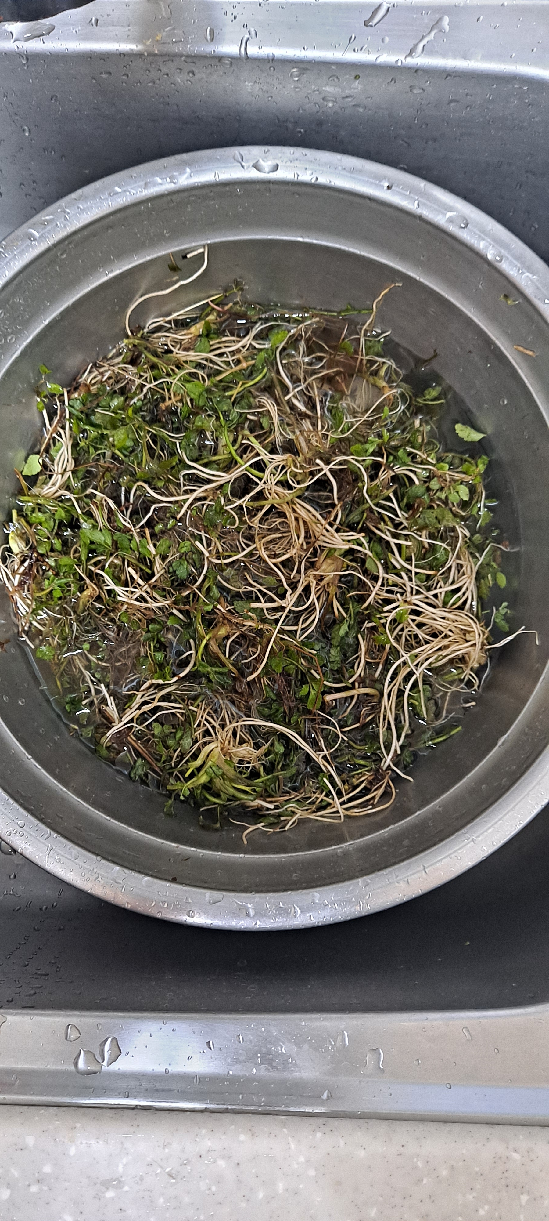 여주에 가서 또 미나리를 캐왔다. 청정지역에서 자란 것이라 대강 씻어도 되지만 워낙 잡풀이 많은 곳에 섞여 있는 미나리라 뿌리에서 뜯어낼 것이 많다. 사실 흙을 털어내는 것은 다섯 번 정도만 씻으면 되지만 마른 잡풀을 뿌리에서 떼어내는 것이 시간이 많이 걸린다.