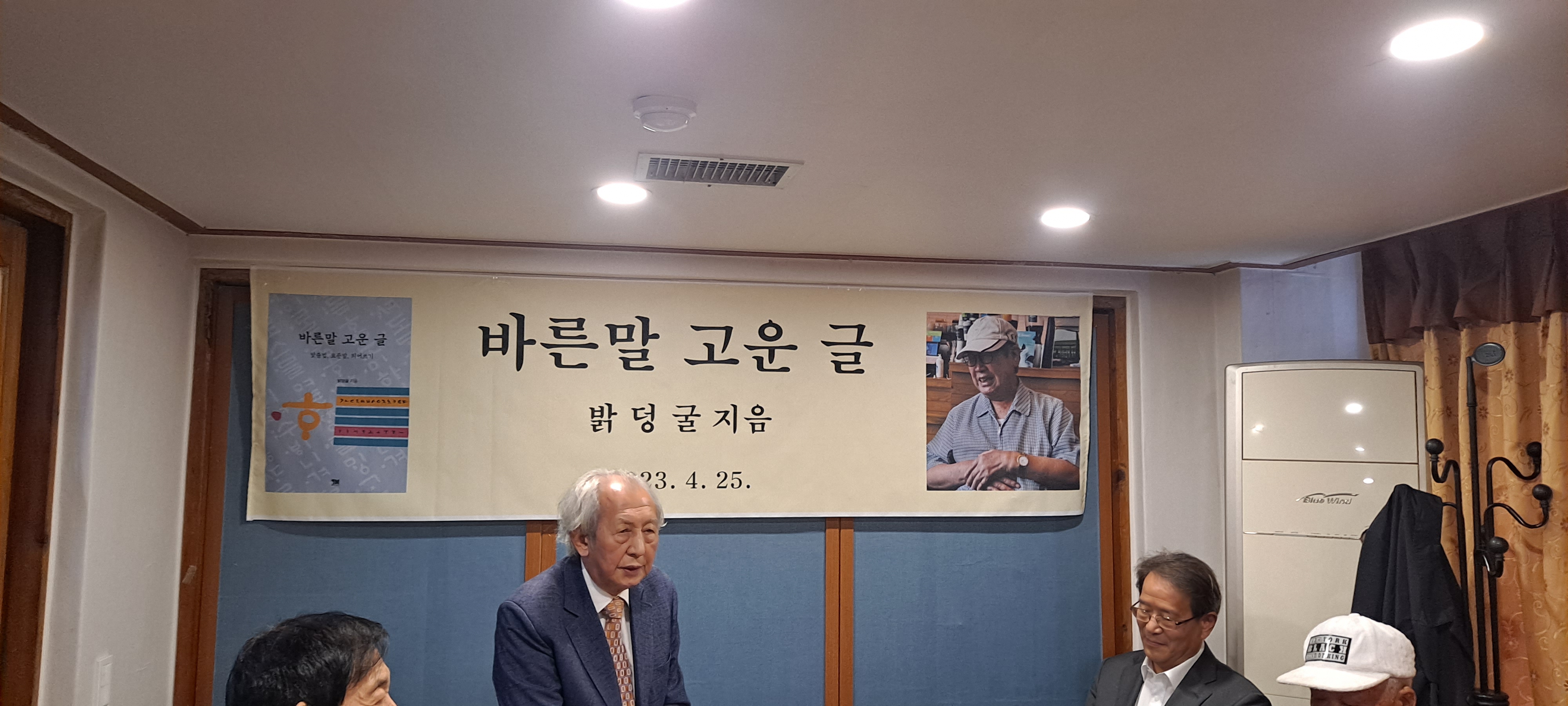 회장을 맡고 있는 나는 그냥 있을 수 없어 출판을 축하하는 작은 자리를 마려하였다. 밝덩굴 고문님은 우리나라 한글 역사에 한 획을 그은 분으로 한글학회 정회원이며 많은 사람들로부터 존경을 받는 분이다.