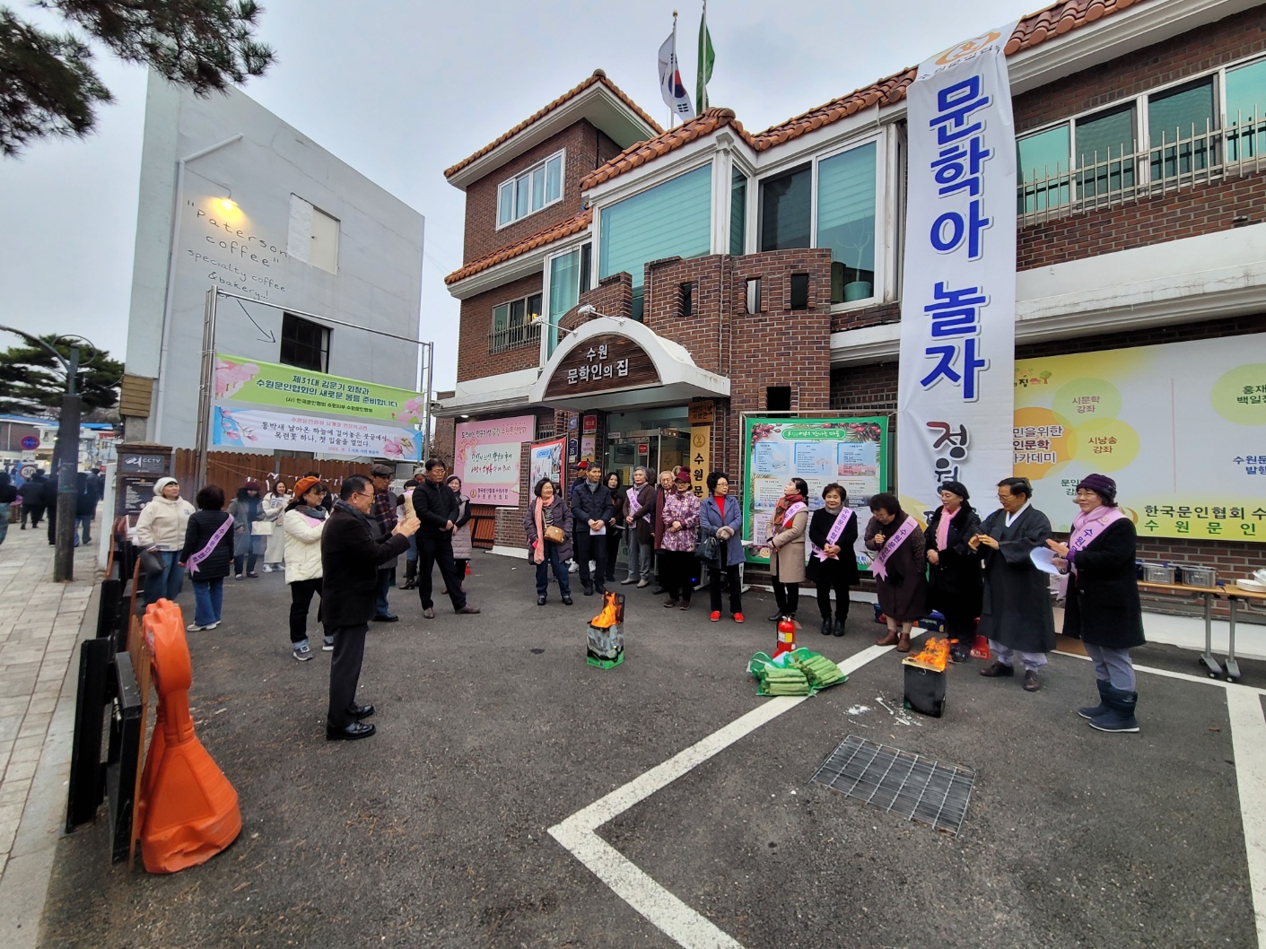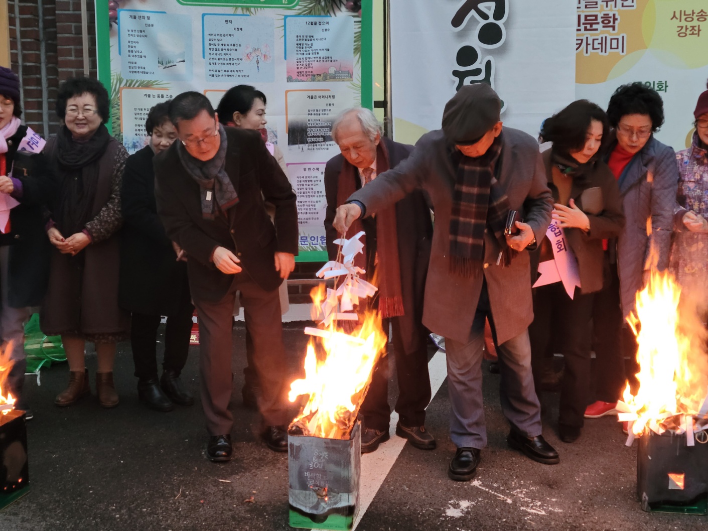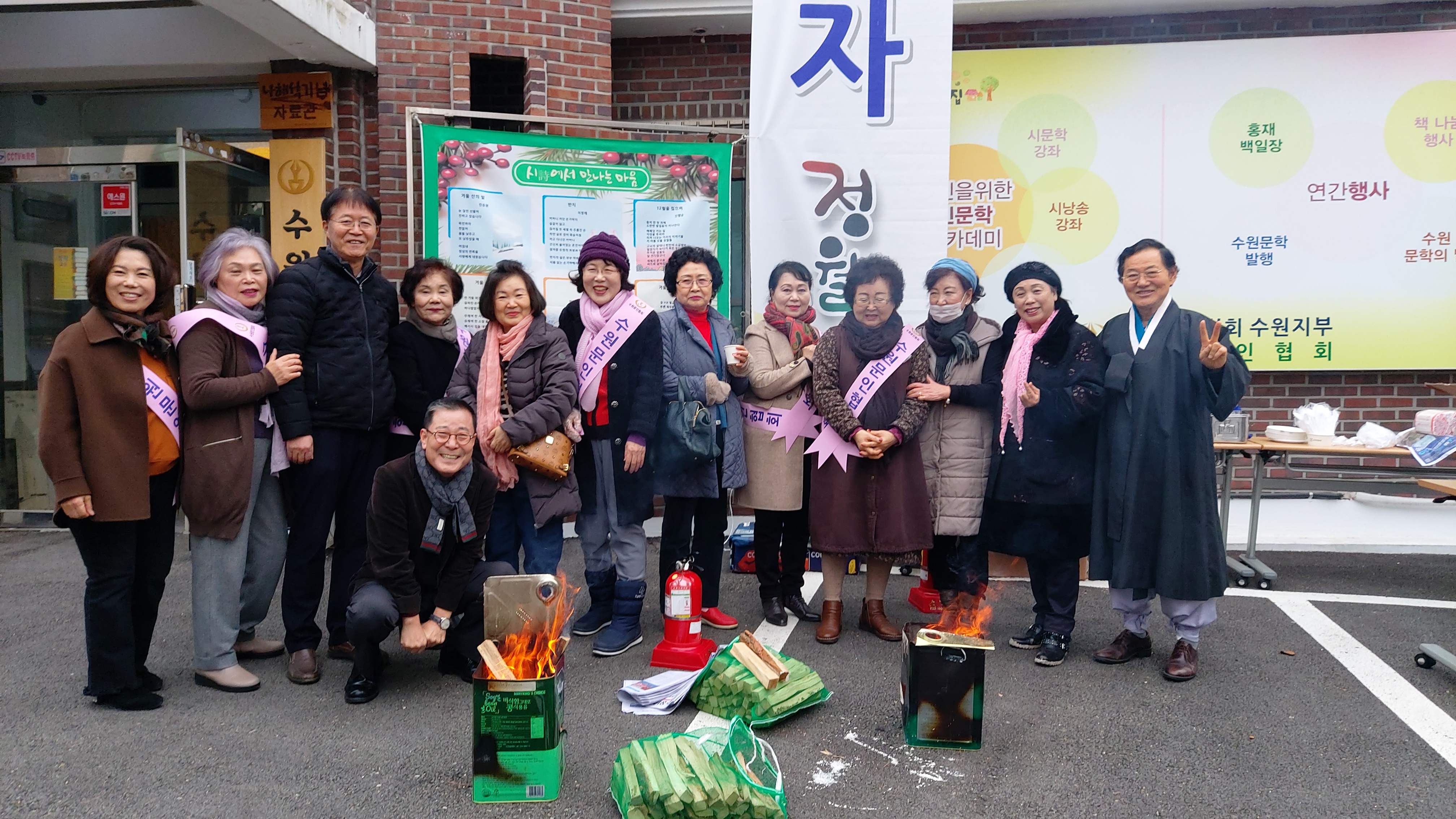 수원문인협회에서 정월대보름 달집태우기 행사가 있었다. 불을 피우고 소원을 비는 행사인데 도심 한가운데서 불을 피우는 좀처럼 보기 드문 행사였다. 소화기를 준비했고 소방서에 미리 신고도 했다.